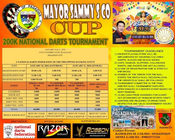 Pagadian City didn’t just host a darts tournament on January 10–11, 2026 — it threw a full-blown darts jam session. The Mayor Sammy Co Cup 200,000 National Darts Tournament took over the Asenso Convention Center, and with 182 players locking…